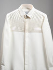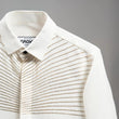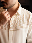 This gold embroidered shirt redefines minimalism through detail and intent. Set on a clean white base, radiant golden bead embroidery flows outward from the placket, symbolizing energy, clarity, and quiet brilliance. The design is modern and controlled, allowing the craftsmanship to speak without excess. It’s a premium white shirt for men who command attention through refinement rather than noise.