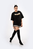 ECHOES OF RITUAL - Black Oversized Printed T-Shirt