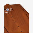 Ember Collar channels warmth with restraint. Defined by structured diagonal stitch panels and finished with subtle infinity embroidery at the collar, this piece reflects continuity, craft, and quiet permanence. The rich ember tone carries depth without excess, allowing texture and form to lead.