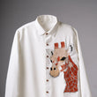 Highground is defined by quiet confidence and elevated perspective. Cut from crisp ivory, this Giraffe Embroidered Shirt is brought to life by an intricately embroidered giraffe rendered with geometric detail — expressive, composed, and intentionally unexpected. The design feels architectural yet organic, making it a subtle statement for those who naturally rise above the noise.