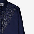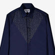 Midnight Axis is built around alignment—where balance, direction, and restraint converge. Defined by a precise V-shaped beadwork pattern, this piece draws the eye inward, creating a sense of focus and symmetry. The embroidery moves with intention, forming a central axis that anchors the design in quiet authority.