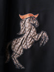 Detailing: Dual-tone embroidered stallions with patterned fill