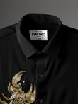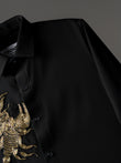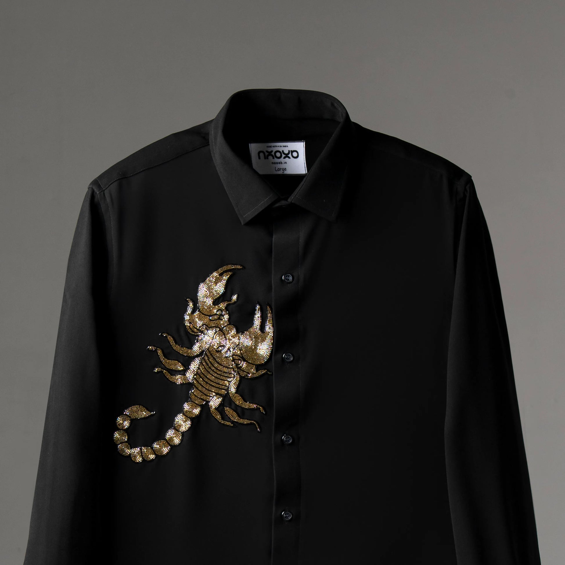 A commanding black shirt featuring a hand-embroidered golden scorpion — a symbol of power, precision, and silent dominance. Designed for those who move with intent and strike with style.